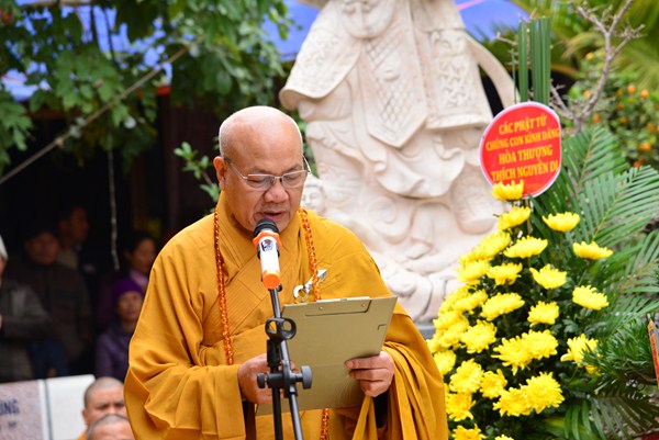 HT. Thích Quảng Tùng cung tuyên hành trạng và dâng lời tưởng niệm cố trưởng lão HT. Thích Nguyên Di
